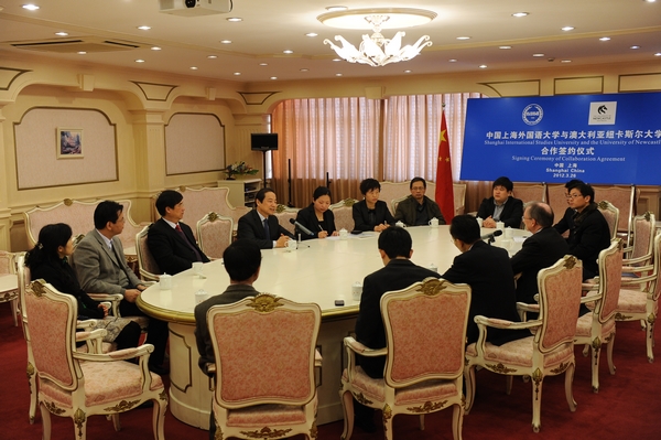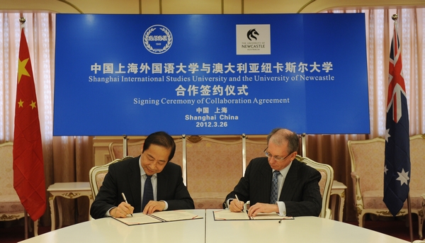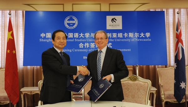 3月26日上午,上海外国语大学与澳大利亚纽卡斯尔大学合作签约仪式在虹口校区举行。校长曹德明教授、纽卡斯尔大学副校长Kevin McConkey教授出席了签约仪式。