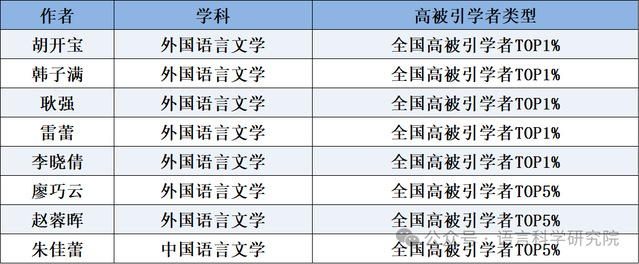 In December 2025, the CNKI Evaluation Center released the 2025 Chinas Highly Cited Scholarslist. Eight faculty members from the Institute of Language Sciences at Shanghai International Studies University were selected. Professors Hu Kaibao, Han Ziman, Geng Qiang, Lei Lei, and Research Fellow Li Xiaoqian were recognized as National Highly Cited Scholars (Top 1%)in the discipline of Foreign Languages and Literatures. Professors Liao Qiaoyun and Zhao Ronghui were selected as National Highly Cited Scholars (Top 5%)in the discipline of Foreign Languages and Literatures. Associate Professor Zhu Jialei was selected as a National Highly Cited Scholar (Top 5%)in the discipline of Chinese Language and Literature.