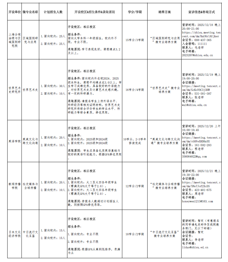 关于上海外国语大学2025-2026学年第二学期微专业招生工作的通知