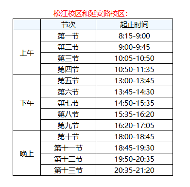 9.东华大学松江校区上课时间安排如下: