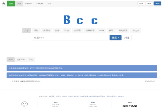 北京语言大学语料库 (http://bcc.blcu.edu.cn/)