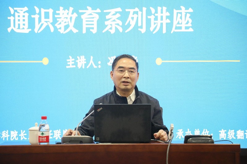 冯庆华老师以“什么是翻译学”的主题,从翻译研究与学习中常见的十个方面,结合详实的例证,为同学们剖析何为翻译,以及在当下智能时代应当如何学好翻译。这十个方面分别是:理解与表达、直译与意译、翻译的等值、译法面面观、译作的鉴赏、习语与翻译、辞格的翻译、文化的翻译、语言学与翻译、语料库与翻译。话题层层深入,冯老师旁征博引,妙语连珠,用轻松幽默的方式全面地为同学们解读何为“翻译”。