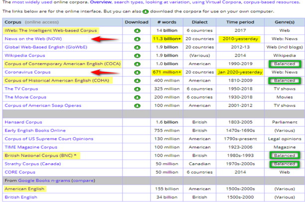 英语语料库((https://www.english-corpora.org/))