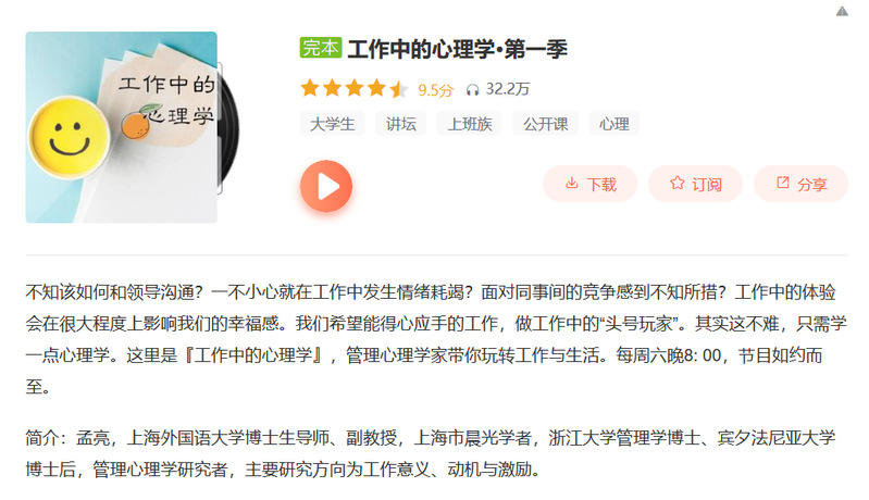 喜马拉雅上孟亮老师发布的《工作中的心理学》