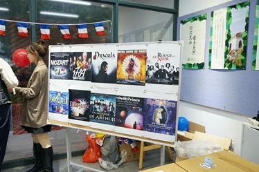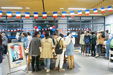 在布置了各式各样的戏剧海报、摆件、点心以及标志性的红白蓝旗帜的会场内,多语文化带之法语角的活动如火如荼地展开。通过各个与法国文化与艺术相关的小游戏,有部分同学们透过法语本身了解了法国的戏剧文化,又有部分同学由戏剧文化出发,对法语产生了浓厚的兴趣。会场的法式点心与饮品更是令同学们连连点赞,活动在充满法兰西风情的氛围中圆满结束。