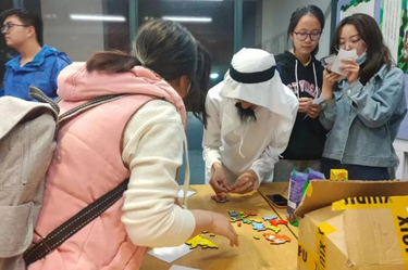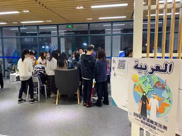 东方语学院为我们带来了越南语与阿拉伯语两大语种的精彩活动。在越南语主题区域,同学们在猜汉越词、朗读越南语等小游戏中,常对越南语读音及含义产生似曾相识的感觉,体会了越南文化与中国文化的密切联系。在阿拉伯语主题区域,同学们积极参与语音小游戏,从发音到日常用语,通过负责人耐心的讲解,不同专业的同学们都乐在其中。除了精心设计的游戏环节,会场内的越南特色纸灯笼、越南米粉以及打扮成阿拉伯人的工作人员,都烘托着多语角独特的异国氛围。