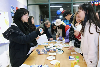 法语系主办的第二场多语文化带活动围绕法国美食展开。法国是知名的美食国度,拥有极其丰富的饮食文化。通过主题分别为“甜点”“奶酪”“红酒”“用餐礼仪”的四个游戏,法语系的同学们带领大家了解了法国最具特色的几种食品及其背后妙趣横生的历史,向大家普及相关法语词汇和简单实用的法国生活常识,激发了参与者对法语文化的兴趣。在红酒游戏中,法语系外教Julien热情地向参与者介绍各大红酒产区的相关知识,与同学们亲切交谈。在品味美食中感受法国文化,到场的老师同学们都收获了味蕾和精神上的双重愉悦。