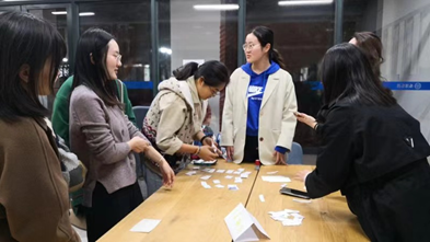 日本文化经济学院多语文化带主场活动以“日语外来语图鉴”为主题,采用了小游戏与讲座结合的形式。在“听音猜意”中,同学们通过日语片假名发音规律,进一步了解日语与英语的联系。“汉语词汇辨别”则直观地让同学们感受汉字进入日本后千变万化的意义。有了前两个环节的铺垫,“字幕中的外来语”通过视听的方式让同学们更加沉浸其中。除了游戏之外,本次日语角也请来了日本外教林工老师前来开展主题讲座。参加的同学们都全神贯注地聆听,收获了许多与片假名有关的知识。