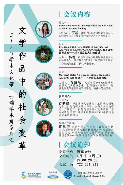 SISU学术文化带|云端学术角第二十三期:文学作品中的社会变革