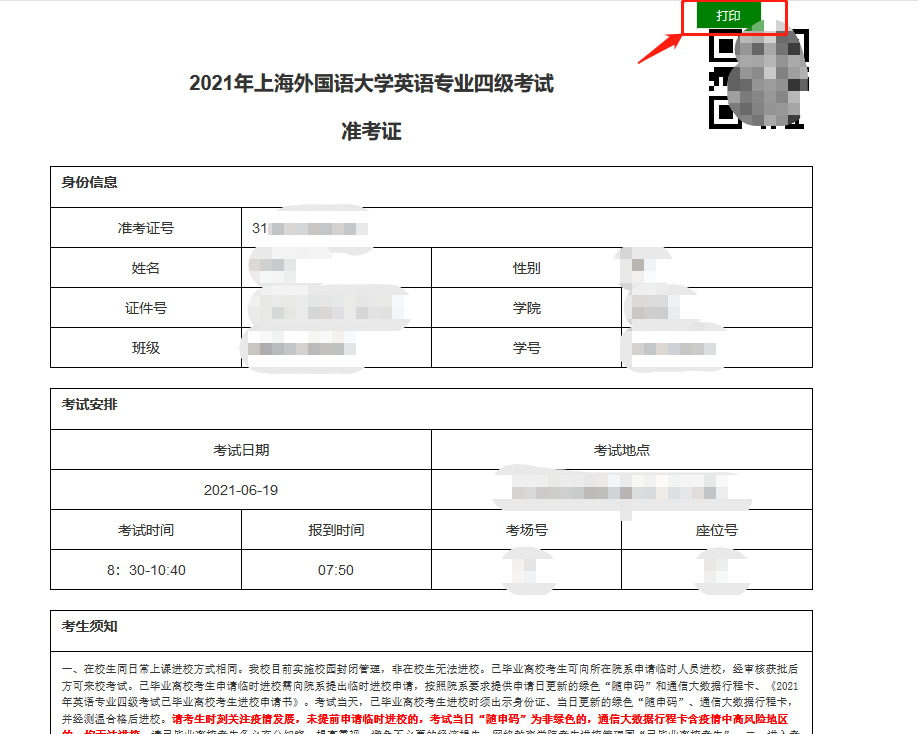 六、请考生仔细阅读、认真学习教务处网站《2021年英语专业四级考试防疫须知》http://www.newoaa.shisu.edu.cn/2b/b7/c6353a142263/page.htm,务必按照要求赴考。
