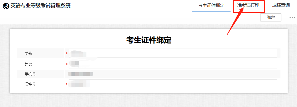 2. 绑定时使用的证件号须与报名缴费时使用的证件号一致。