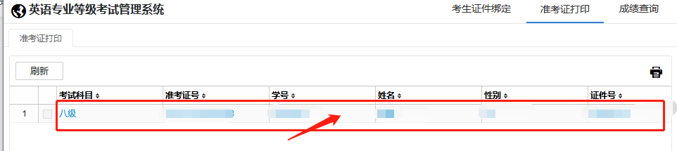 3. 点击准考证打印。