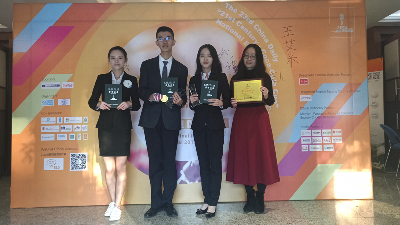 12月10日,正沪上晚秋,天气初肃,第23届中国日报社“21世纪·可口可乐杯”英语演讲比赛上海赛区决赛在ELS语言中心落下帷幕。代表上外出战的三名学子喜获佳绩,英语学院2016级熊子卿同学一举夺冠。