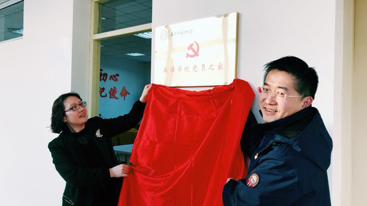 杲杲冬日,一抹阳光伴着温暖与明媚,12月悄然而至。12月1日,上海外国语大学英语学院“党员之家”揭牌仪式于松江校区5教楼418室举行,校长助理、校党委组织部部长张静、英语学院党总支书记孙俭、副书记曹原及部分师生党员代表出席了揭牌仪式。校长助理、校党委组织部部长张静与英语学院党总支书记孙俭共同为英语学院“党员之家”进行了揭牌。揭牌仪式后,全校二级单位的党组织书记参观了英语学院党员之家,并在张静部长的带领下重温了入党誓词。