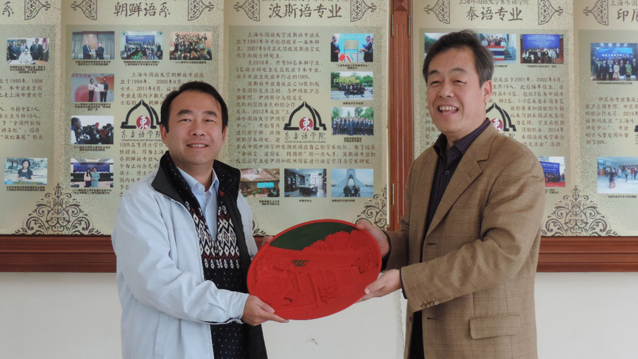 11月28日上午,北京大学外国语学院副院长付志明教授、副院长吴杰伟教授、北京大学图书馆党委书记郑清文副教授(原北大外院副书记兼副院长)、北京大学外国语学院教务办主任崔桂红、团委书记王艳超等一行9人到访上海外国语大学东方语学院调研教务工作和学生工作。东方语学院院长程彤教授、党总支书记王一林、副院长陈杰教授、党总支副书记李燕、工会主席兼办公室主任王雷、院长助理杨阳副教授、教学秘书秦韶云、张榕出席见面交流会。