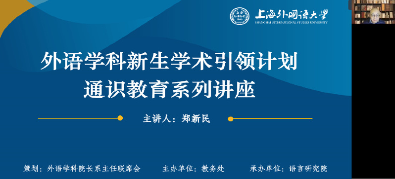 为积极推进“多语种+”办学战略,突出“会语言、通国家、精领域”,帮助外语学科新生从一开始就了解本学科的知识体系和研究领域,提升外语能力,掌握基本的学术研究方法,学校特邀资深学者举办“外语学科新生学术引领计划”通识教育系列讲座。2022年12月2日,第四期外语学科新生学术引领计划通识教育系列讲座在上外松江校区成功举办,郑新民教授为大家分享:什么是语言学。讲座由语言研究院副院长廖巧云教授主持。