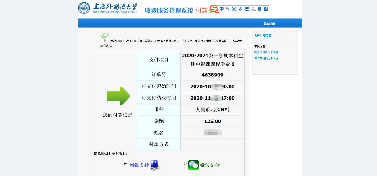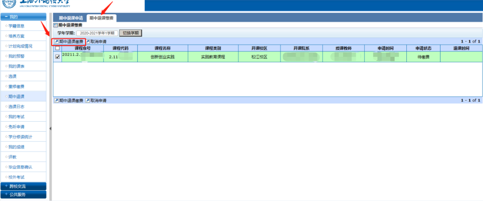 学生须在规定时间内缴费以完成期中退课程序。操作如下图:
