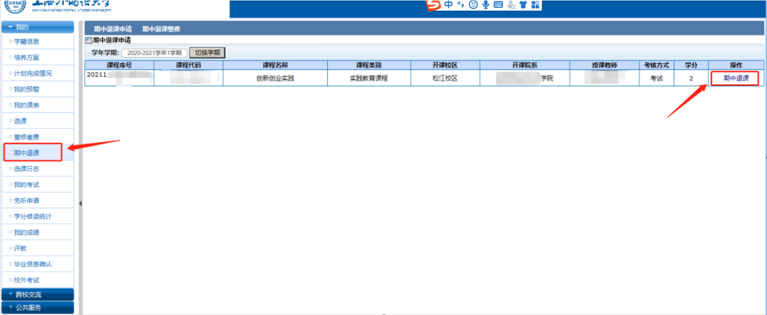学生需在系统在规定时间内申请期中退课。