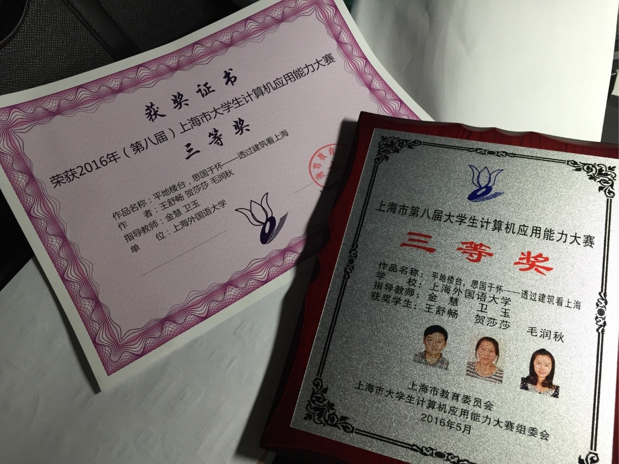 上海外国语大学立足多语种、跨学科、跨文化综合优势,主动对接国家和地方战略,不断传承和彰显外国语言文学的传统特色,在计算机应用能力方面注重将多语种的学科优势与“互联网+”相结合。《透过建筑看上海》作品以专业学科应用类课程为依托,与上外高翻学院合作完成中英文双语剧本,综合运用视频拍摄制作、后期剪辑与包装、PPT手绘、FLASH动画等多媒体手段设计制作而成。作品以上海优秀历史文化建筑为切入点,以建筑为点、时间为线、历史故事为面,讲述百余年来上海历史建筑背后的故事,获得了大赛组委会的认可并取得三等奖的好成绩。(教务处、新闻传播学院)