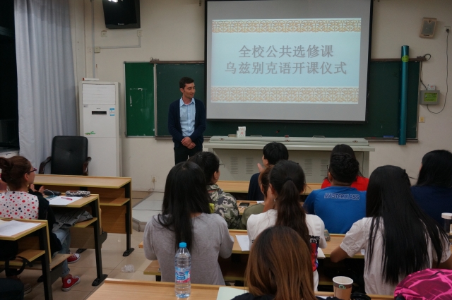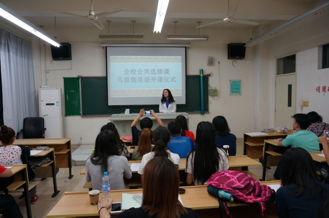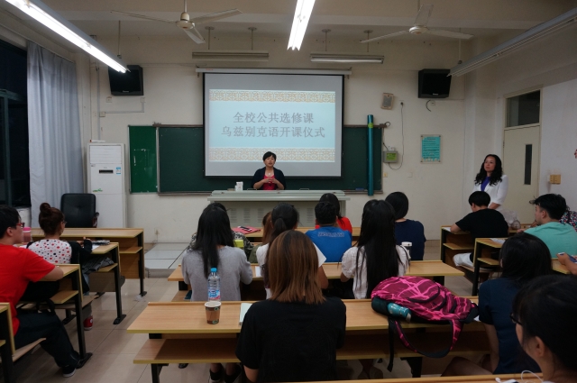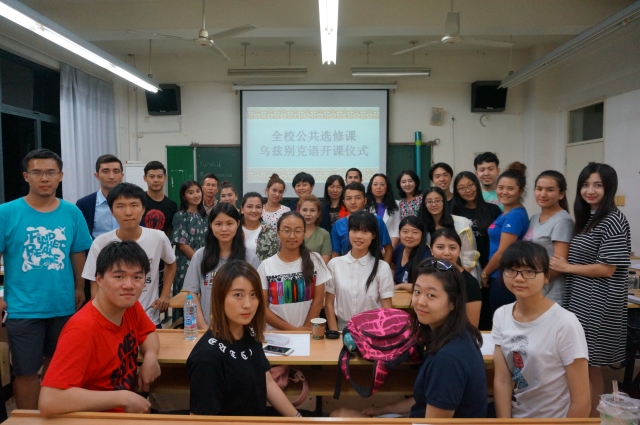 为进一步加强丝绸之路经济带沿线非通用语种建设,促进中亚地区的区域国别研究,落实“多语种+”卓越国际化人才培养机制,加快对乌兹别克语紧需人才的培养,在2015年10月和2016年3月已开设两个乌兹别克语学习班的基础上,上外俄语系中亚语言文化教研室本学期正式开设面向全校本科学生的公共选修课----乌兹别克语,并于9月22日晚正式开始上课。