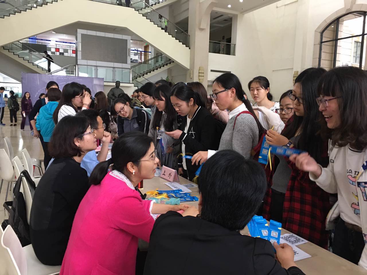 我校除了现场提供咨询之外,还为同学们提供了附有二维码的精美书签,同学们扫描二维码即可查询辅修相关资讯。