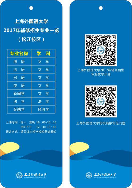 上外充分发展自身的“多语种+”优势,在2017年总共开设英语、德语、法语、日语、新闻学、金融学和法学七个辅修专业。