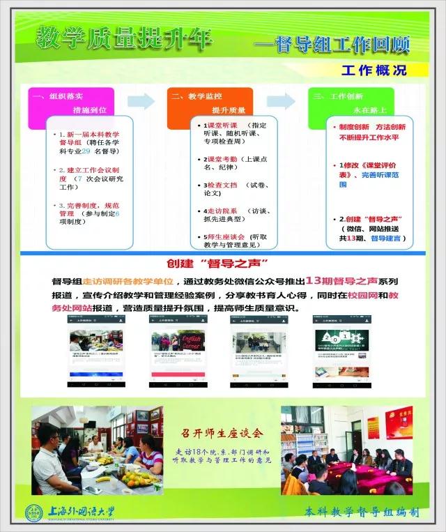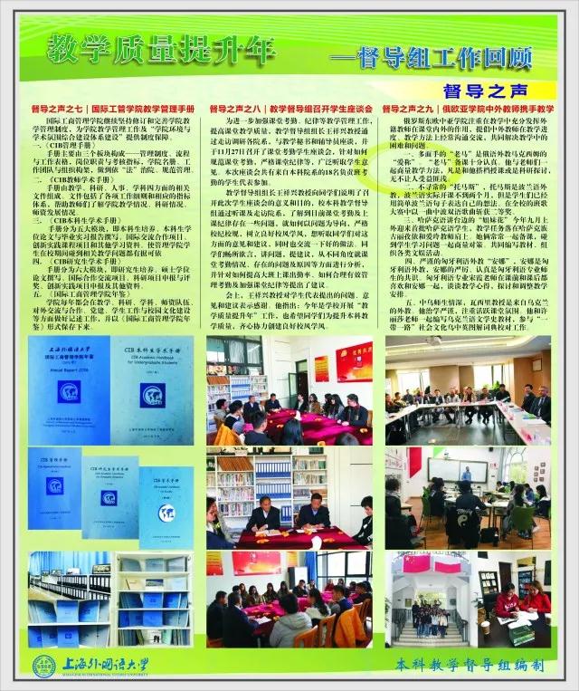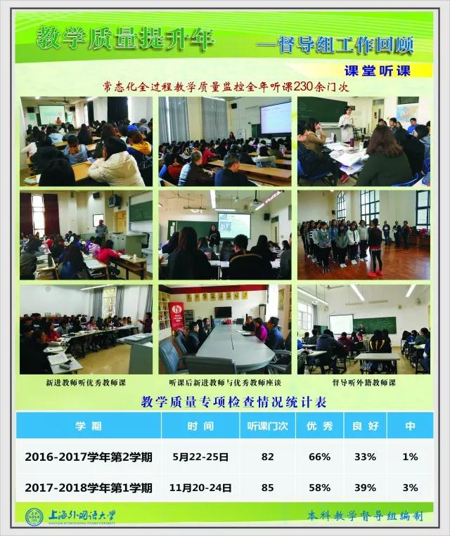 【编者按2017年是学校“教学质量提升年”,在过去的一年里,本科教学督导组紧紧围绕“教学质量提升年”主题,开展了一系列质量监控和提升工作。全校师生的质量意识不断提高,教学督导的引导力和影响力也不断增强。本期督导之声分为会议推进、工作概况、课堂听课、验收检查、督导建言、督导之声和督导专访共七部分,全面回顾2017年本科教学督导组各项工作。新学期新气象,督导组将再接再厉,用心为学校教学和管理建言献策,持续助力学校教学质量提升!