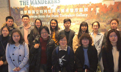 白屹老师(前排左二)带领学生参观俄罗斯美术展