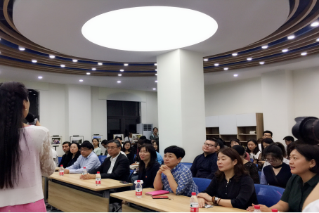 分享会的下半场,中东欧组成员以“中国形象在波兰和匈牙利的传播”及“中、波、匈在教育领域的合作现状”这两个课题衍生为两个板块,第一部分中,大二的波兰语专业同学朱玲向大家汇报了“中国形象”课题的调研成果。汇报中朱玲同学梳理了在波兰和匈牙利搜集到的中国元素,从“自我”和“他我”两个角度切入,结合在波兰街头对市民进行采访的视频以及匈牙利汉学家、电视台专业人士对中国形象的解读,对中国形象在波兰和匈牙利的传播情况作了直观、系统的阐释。第二部分,由马庄慧同学围绕“汉语国际教育与本土教育的融合与发展”这一话题,将此行调研中观察团成员通过走访波匈多所学校,获得的大量详实的第一手研究资料分析汇总后,与听众们进行了分享。