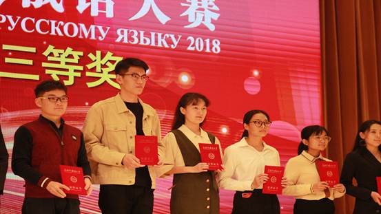 大赛评委会主任王松亭教授对大赛进行了点评,对本次大赛在题型设置和内容上的创新给予了充分肯定,对上外俄罗斯东欧中亚学院的精心准备表示感谢,对参赛的各高校学子提出了殷切期望。尤尔金先生在致辞中对俄语大赛在推动俄语和俄罗斯文化在中国的传播、在培养和发现俄语专业优秀人才方面起到的积极作用表示赞扬。钱玲副书记对本次大赛进行了总结发言,对获奖选手和高校表示祝贺,并宣布2018全国高校俄语大赛圆满落幕。