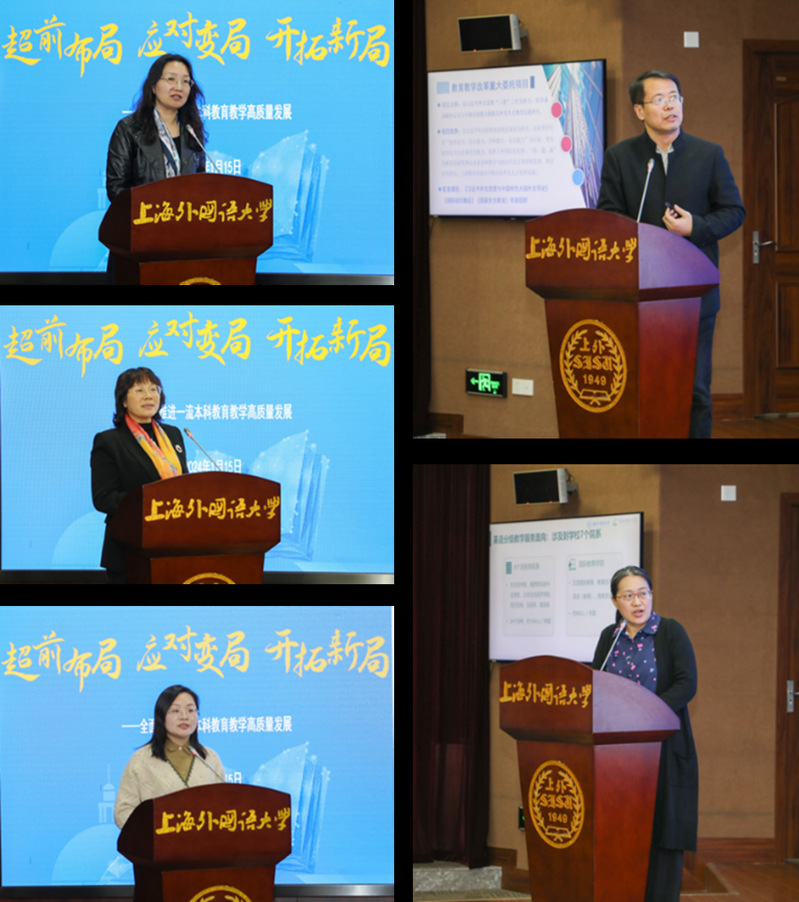 英语学院、国际关系与公共事务学院、语言研究院、国际教育学院、马克思主义学院分别分享了拔尖人才培养、课程思政改革、跨学科专业建设、分级教学体系构建、思政课程改革创新等方面的内容。
