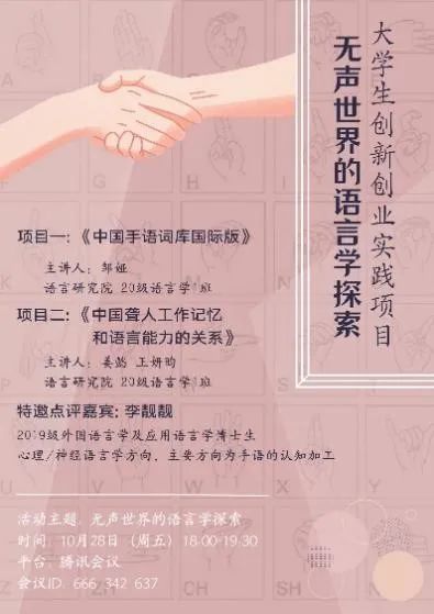 SISU云端学术角第四十七期由教务处主办,由语言研究院承办,以「无声世界的语言学探索」为活动主题,将于10月28日18:00准时开启,欢迎大家积极参与!