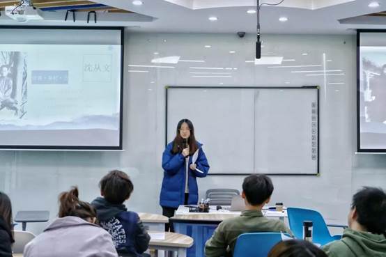 每一组的展示结束后,高洁老师与曾峻梅老师都会补充背景知识并略微点评,但更多的是邀请聆听者进行提问交流。在各色“刁钻”“尖锐”问题的激发下,所有人都参与其间。随着一个观点受到质疑,回答者或通过引入更多知识来解释,或在质疑的推动下进一步寻找更合适的答案。来自上外信管专业的大二学生陈一潇表示,相比于自己选修的其他文学课,“日本文学导读”在老师教授基本知识和文学解读方法的基础上,更是鼓励全体同学拓展思维,以批判精神欣赏、分析文学作品,欢迎并期待着讨论甚至是辩论。
