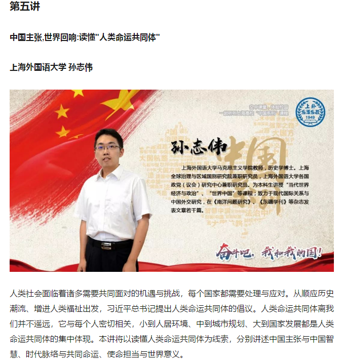 第六、积极参与推动我校专业院系课程思政建设,根据不同专业人才培养特点和专业能力素质要求,帮助其科学合理设计思想政治教育内容,打造我校课程思政示范课堂。《光明日报》、《解放日报》、“焦点访谈”等新闻媒体都进行了报导。由马克思主义学院牵头建设的《世界中国》,作为我校课程思政的核心课程,已申请建设成为教育部在线开放课程。