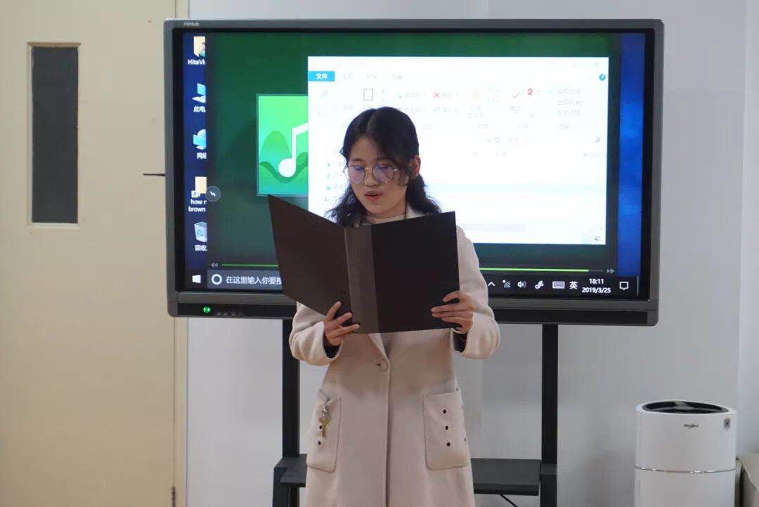 最后一组更是不甘示弱,让评委老师们赞叹连连,惊喜于同学们的创新与真情。采用小话剧的形式,尹佳慧组的三人依次上场诠释《巾帼气概》,旁白的加入、人物的切换与配乐的变化使朗诵更加灵动;而张璐瑶与箫逸文一组更是创新地将三首小诗穿插朗诵,断片式的场景,不断切换的人物与地点让情绪层层高昂,最终爆发汇聚成一条乡愁的河,流进每一个人的心里;陈婷和胡雨函则带来了《再别康桥》全新的诠释方式,高潮部分被唱成了曲子,合着歌声,她们道出了那些言语难以表达的情感;最后一位出场的王怿蕾同学用清脆的嗓音,以《相信未来》为我们的初赛画上了完满的句号。