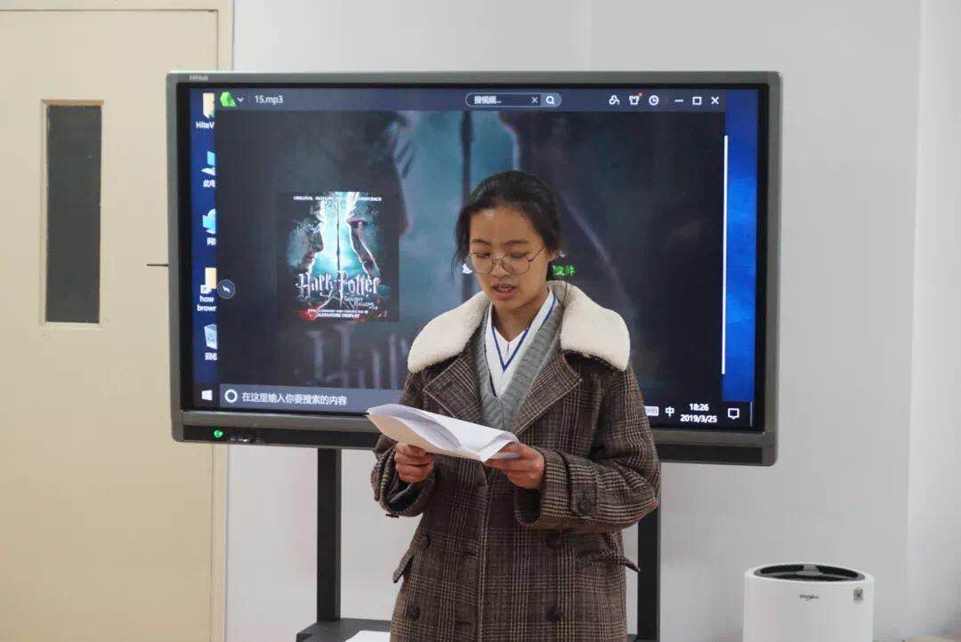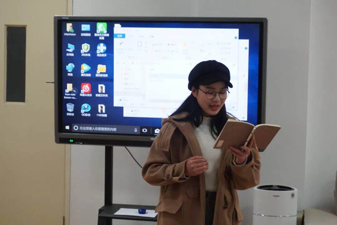 最后一组更是不甘示弱,让评委老师们赞叹连连,惊喜于同学们的创新与真情。采用小话剧的形式,尹佳慧组的三人依次上场诠释《巾帼气概》,旁白的加入、人物的切换与配乐的变化使朗诵更加灵动;而张璐瑶与箫逸文一组更是创新地将三首小诗穿插朗诵,断片式的场景,不断切换的人物与地点让情绪层层高昂,最终爆发汇聚成一条乡愁的河,流进每一个人的心里;陈婷和胡雨函则带来了《再别康桥》全新的诠释方式,高潮部分被唱成了曲子,合着歌声,她们道出了那些言语难以表达的情感;最后一位出场的王怿蕾同学用清脆的嗓音,以《相信未来》为我们的初赛画上了完满的句号。
