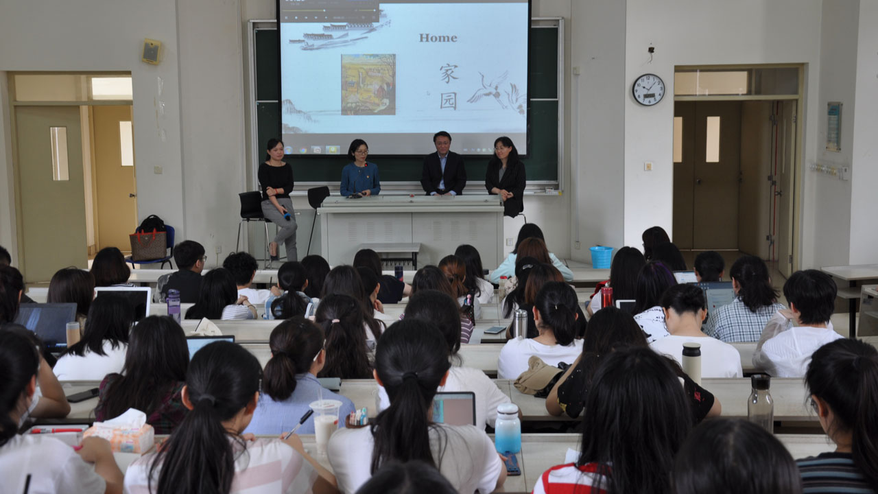 本课程负责人杨维嘉老师压轴出场。她主讲的内容是中美高校英语教育的对比分析。杨老师询问同学们“为什么选择了英语专业?”学生们踊跃回应。很多同学表示,他们是出于对英语的热爱而选择了英语专业。杨老师分享了自己的研究发现:中国一流外国语大学和美国常春藤大学的英语系,都具有很强的人文意识,注重专业内涵的人文性,在人才培养目标上有很多共同之处。中美一流外语系都致力于培养卓越的语言人才,不但写作沟通能力超群,批判性思维和创造想象力也相当出众,富有强烈的使命感和责任心。