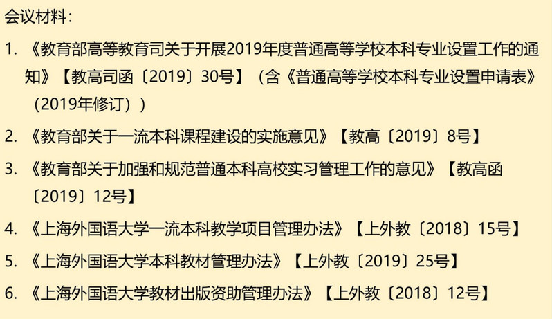 推进会上,教务处姜智彬处长解读了关于一流本科专业建设、一流本科课程建设、一流教材体系建设的上级文件精神,提出要做好新时代外语类专业建设与发展规划。本次工作会议旨在深入贯彻全国教育大会和新时代全国高校本科教育工作会议精神,落实《教育部高等教育司关于开展2019年度普通高等学校本科专业设置工作的通知》《教育部办公厅关于实施一流本科专业建设“双万计划”的通知》的要求,扎实推进一流本科专业建设。会上,姜智彬处长请各本科人才培养单位在本单位内加强宣传引导,认真对照文件要求,勇于担当,积极作为,全力以赴做强一流本科、建设一流专业、培养一流人才。