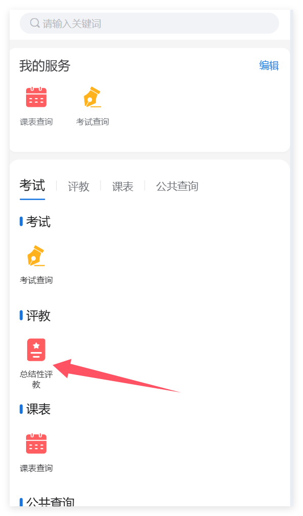 登录教务系统(https://jw.shisu.edu.cn/home),右上角菜单——学生全部服务,选择“学生总结性评教”。