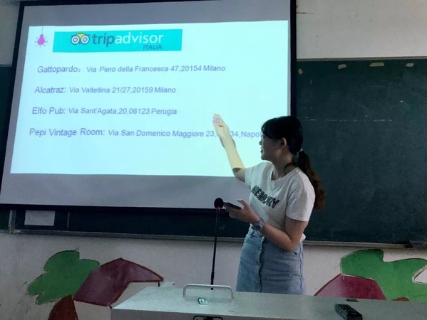 在张琳老师看来,语言是一把钥匙,可以打开这个国家文化的大门。但她逐渐发现对现在的意大利语专业学生来说,只具备语言能力是不够的。“有些人会跨领域去从事其他相关工作,所以对学生综合能力的培养也是极其重要的。”结合自己在意大利佩鲁贾留学期间学到的外语教学方法,她对自己课堂上的意大利语教学进行了更加科学、系统的设计。她以“培养综合性外语人才”为核心内容,以提高学生的信息检索能力、团队合作能力、传播沟通能力等为宗旨,在教学中进行别出心裁的设计,“基于任务的学习”,“新”招频出,培养学生真正做到“会语言,通国家,精领域”。