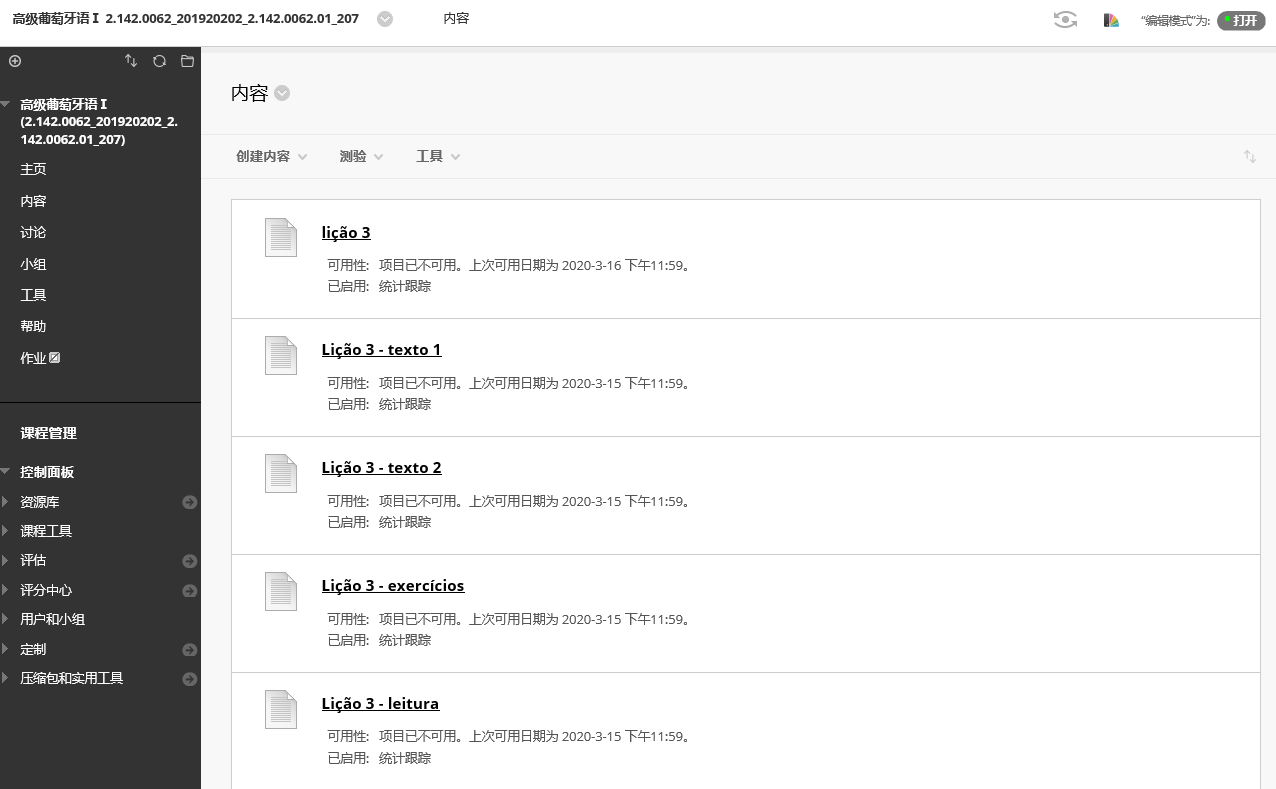首先是明确教学目标,我所教的三年级《高级葡萄牙语》的教学目标是培养学生的听说读写译方面的技能,所以在准备在线资料时,和线下课堂教学一样,我精心准备教学资料、作业练习等并全部上传到平台,要求学生事先阅读或跟读音频。但是线上课程并非是传统课程的复制,若要保证学生对所传教学资料,线上教学内容的充分掌握,就要努力探索和思考如何设计教学过程,包括课内直播和课外监督,力求达到甚至超越线下课堂教学的效果。