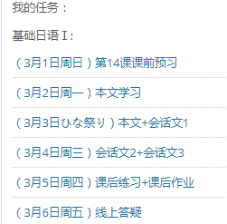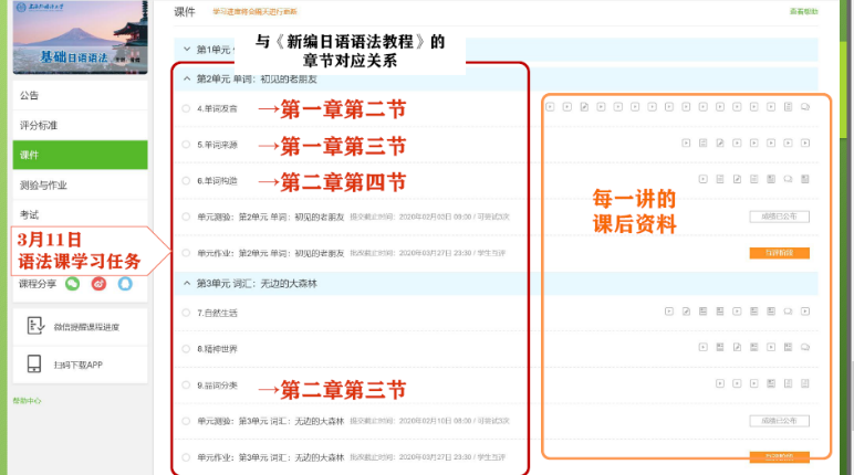 为了减轻学生线上学习的操作负担,我提前编写了《中国大学MOOC平台<基础日语语法>课程学习方法》,并将学习任务可视化。
