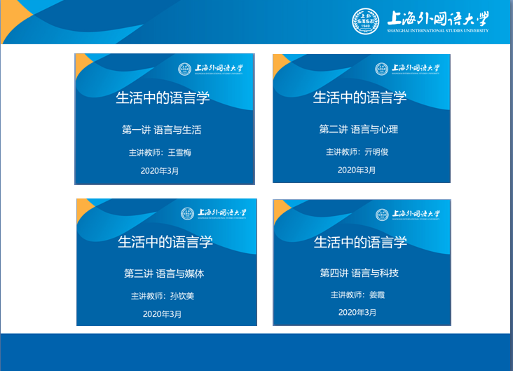 《生活中的语言学》是一门面向全校本科生的通识教育选修课,旨在帮助学生掌握基本的语言学与应用语言学理论;运用语言学理论分析生活中的语言现象,掌握语言应用方法,成为语言生活派。我们在春季云开学时,和各位同事一样,坚持立德树人,努力运用信息技术、丰富教学资源、关注教学细节、保障教学质量。
