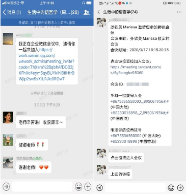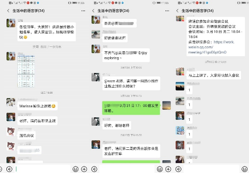 微信群中师生关于授课、布置作业、答疑等互动