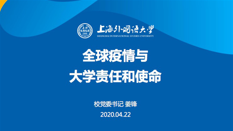 4月22日下午,上海外国语大学党委书记姜锋为新闻传播学院、德语系的师生党员主讲“全球疫情与大学责任和使命”专题党课。