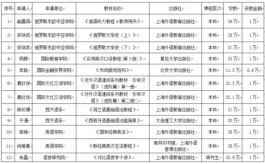 根据《上海外国语大学教材出版资助管理办法》(上外教〔2018〕12号)和《上海外国语大学关于开展2020年度已出版优质教材后期资助申报的通知》要求,学校近期组织开展了相关申报和推荐工作。