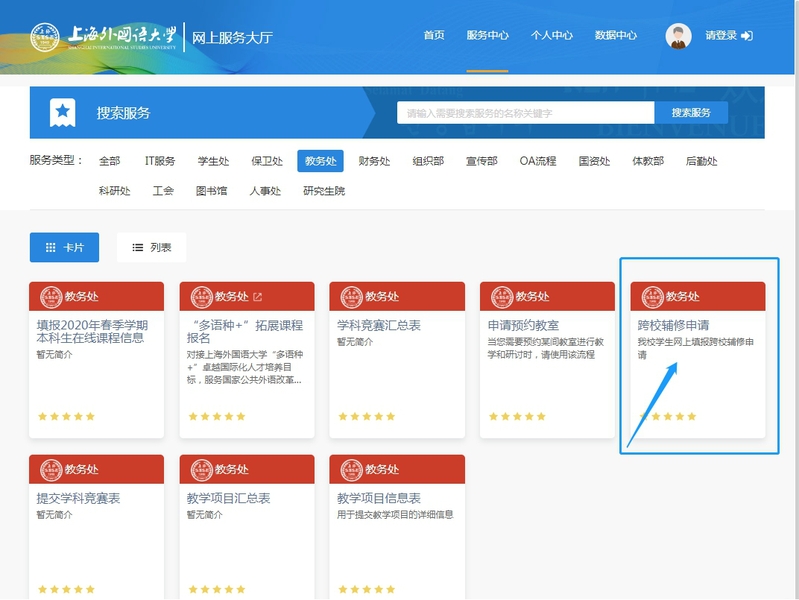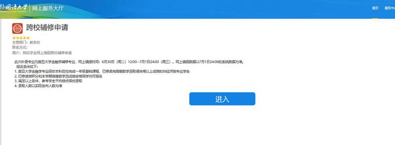 1.符合报名条件的学生在网上填报申请,需登录学校信息平台网上服务大厅https://ehall.shisu.edu.cn/,选择“跨校辅修申请”报名页面(如出现统一身份认证界面,请输入信息平台学号账号及密码):