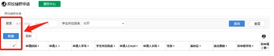 2.进入跨校辅修申请页面后选择“新建”按钮: