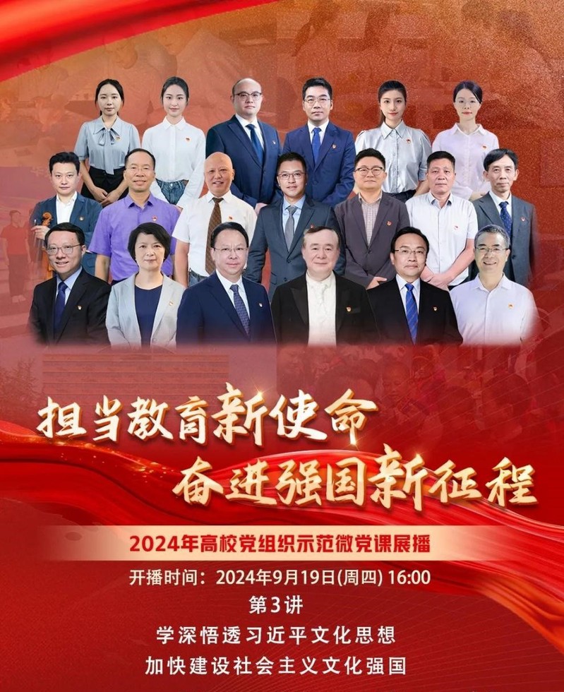 为深刻学习领会习近平文化思想的丰富内涵,进一步激发全系师生奋进强国新征程的强大力量,2024919日(周四)下午,本支部组织全体党员学习收看了2024年高校党组织示范微党课(第二阶段)第三讲《学深悟透习近平文化思想,加快建设社会主义文化强国》。该期微党课展示了南京大学、中国传媒大学、中央音乐学院、华中师范大学、华东师范大学、湖南大学等6所高校在文化强国建设中的探索实践。