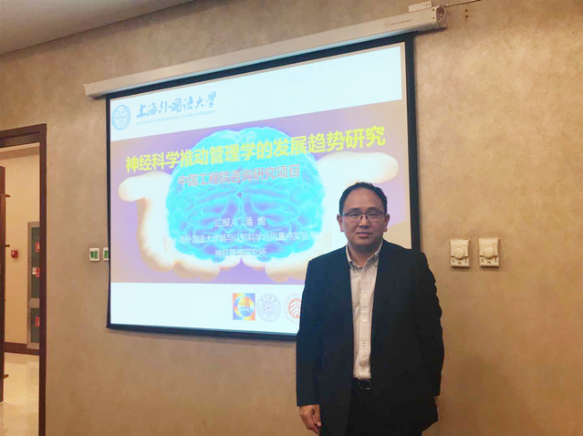 作为项目依托单位和主要研究团队之一(课题组由清华大学、北京大学、浙江大学、北京邮电大学、浙江工业大学,上海交通大学、上海外国语大学组成),我校脑与认知科学应用重点实验室、国际工商管理学院潘煜教授代表课题组向结题评审会做了结题汇报。汇报围绕神经科学推动管理学发展的优势与现状、神经科学技术与管理学研究范式发展、神经科学推动管理学发展的领域研究、前景与困难等四个方面依次展开。随后欧亚科学院马庆国院士进行点评与补充。汇报结束后,与会院士纷纷给予了较高的评价,认为选题前沿新颖,紧密贴合管理学与信息科学结合、管理学与生命科学结合的当前发展趋势,探索学科交叉合作产生的新理念与新发展。